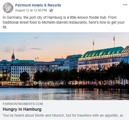 Hotels are synonymous with travel, and Fairmont Hotels & Resorts knows how to use that to its advantage. Aside from promoting its properties, the brand uses Facebook to share travel guides for the cities in which the hotels are located. Hungry in Hamburg? There’s a guide for that. Want to dive into the Maldives? There’s a guide for that too. The consistent linking to its blog demonstrates Fairmont’s commitment to providing value to its customers outside of its direct product offering—and that’s what people on social are looking for.