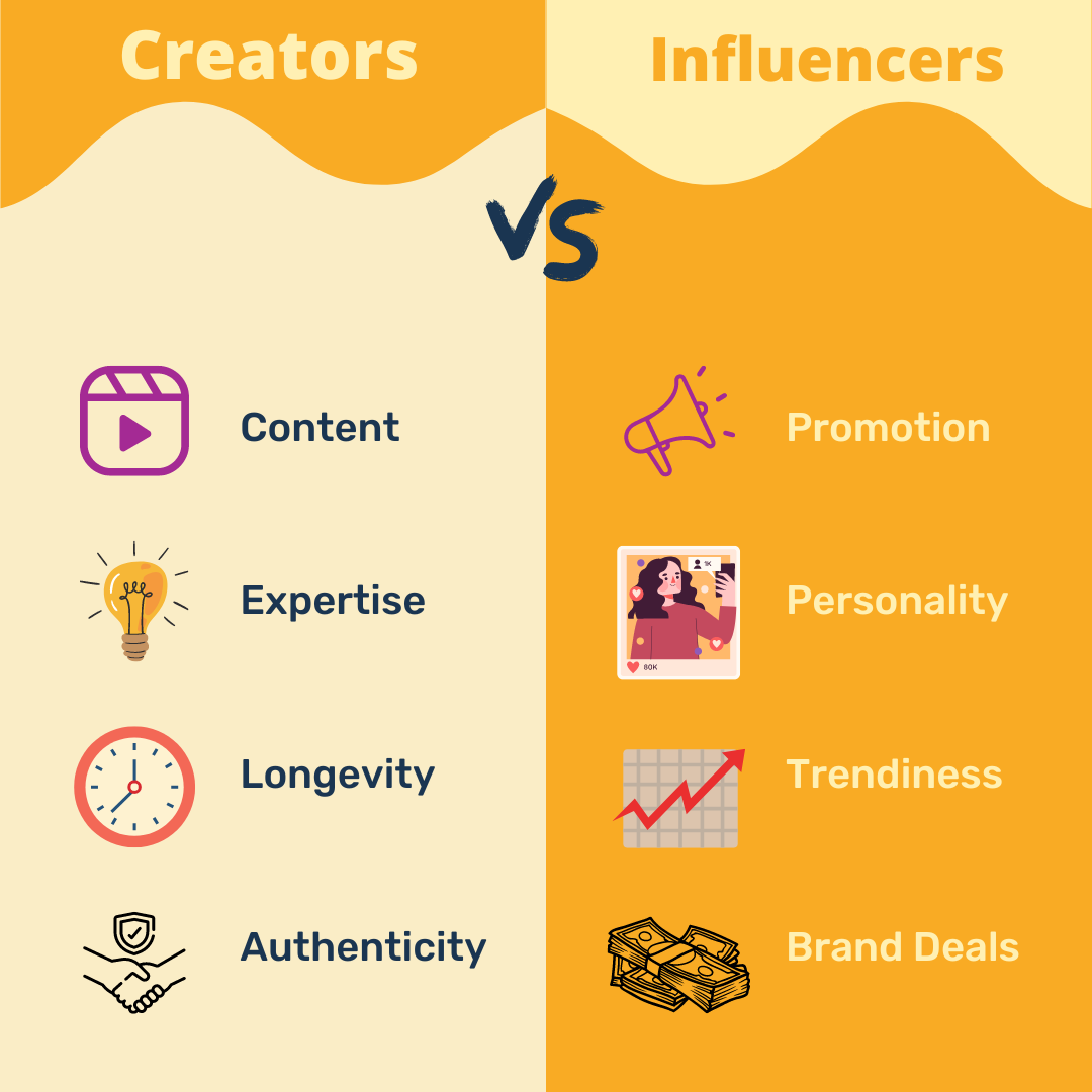 As the social media landscape evolves, it’s important to understand the differences between these two types of personalities and their unique advantages and challenges. In this blog post, we’ll dive into the world of creators and influencers and explore the nuances of each, so you can gain a deeper understanding of where each fits within your content mix!