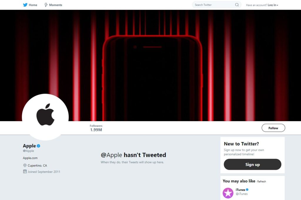 The tech giant is known for its unique marketing, and the way it approaches Twitter certainly makes it stand out. Go to Apple’s Twitter profile, and you’ll see a profile pic, a cover photo… and that’s it. You’re greeted with “@Apple hasn’t Tweeted,” yet the account is verified.