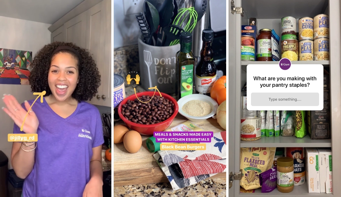 Our client, Giant Food, has a team of nutritionists who are normally available for consultations and classes in-store, but because of COVID-19 restrictions, the team is working from home. We worked with the nutritionists to develop a content plan that allows them to provide the same value and advice that they do in-store—but from their kitchens! Take a look at some of the guidelines they’re following.