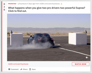 Some brands that have successfully mastered Reddit include Audi, Toyota, and Xbox One. Audi took advantage of both the AMA and the livestream tool, and had celebrities answer questions while speeding in Audi’s newest car. Toyota took the approach of participating on a different brand’s subreddit. They promoted a video showcasing two Supras racing on the Formula 1 subreddit. Though the content wasn’t exactly about Formula 1, it provided value relative to the community’s interest.