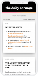 This newsletter is sent out daily (as you may have guessed from the name) by Carney, a dynamic digital agency based in Pittsburgh that wants to help you be “the sharpest marketer in the room.” It’s got a more manageable amount of news, and it also shares examples of great social media campaigns and content—including a section called “Ads from the Past” for some nostalgia.